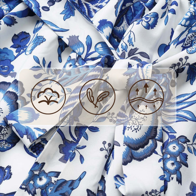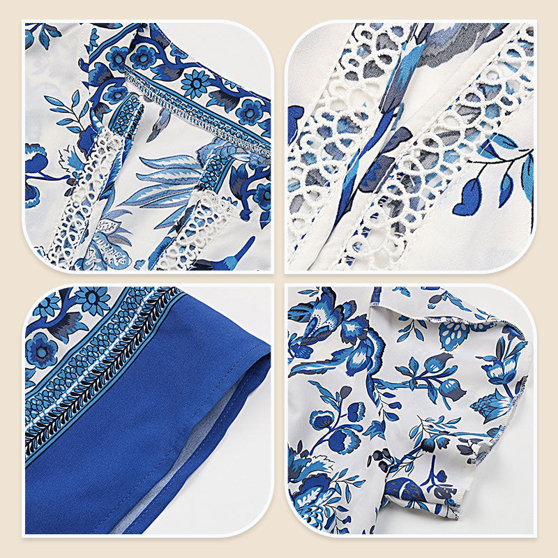 STUNNING FLORAL PRINT: It showcases a captivating floral pattern that adds a touch of romantic charm to your ensemble. The intricate design and vibrant blue hues make a bold fashion statement.