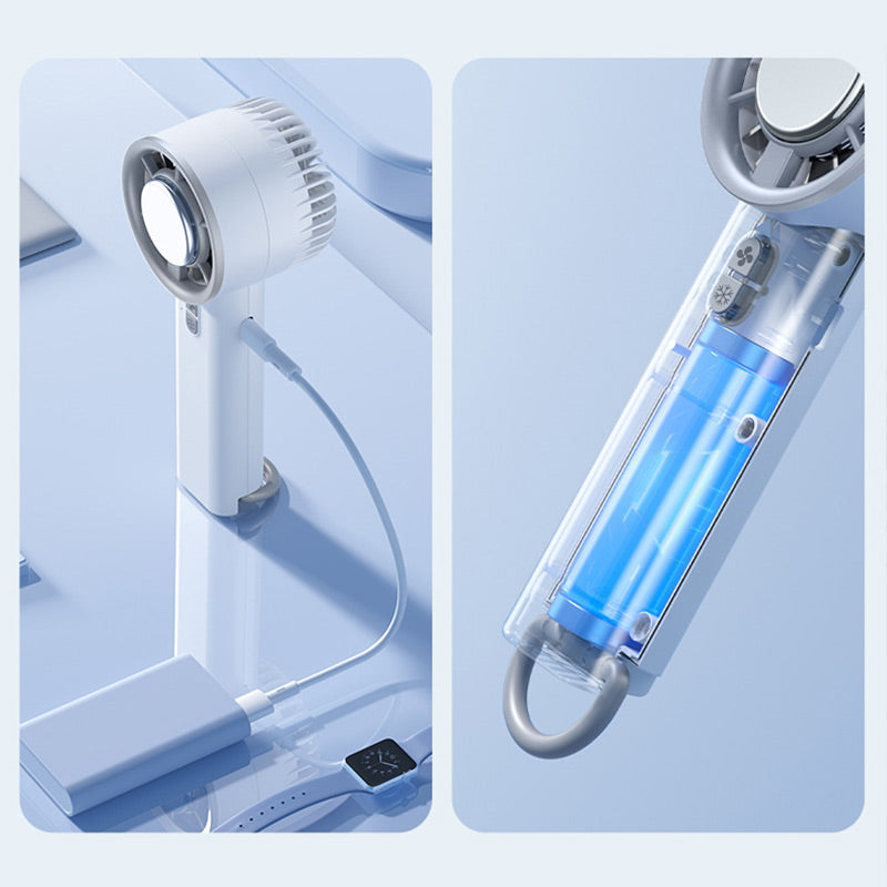 POWERFUL AIRFLOW: Despite its small size, this fan generates powerful airflow for rapid cooling. Perfect for immediate relief from heat while remaining portable and easy to carry.