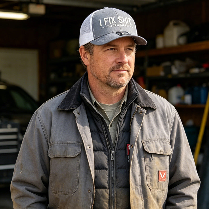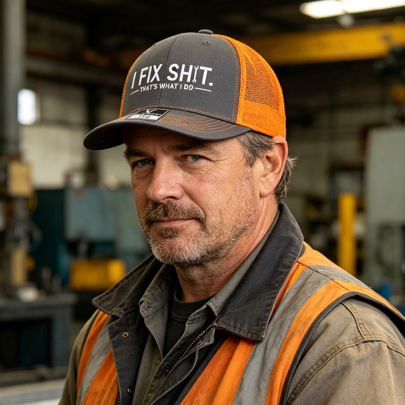 BOLD EMBROIDERED DESIGN - Make a statement with the witty "I FIX SHIT" embroidery. It's a fun, conversation-starting design that proudly showcases your skills and sense of humor to everyone you meet.