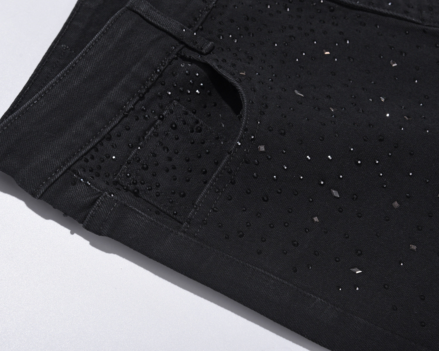 Rhinestone Embellished Slim-Fit Black Denim Jeans