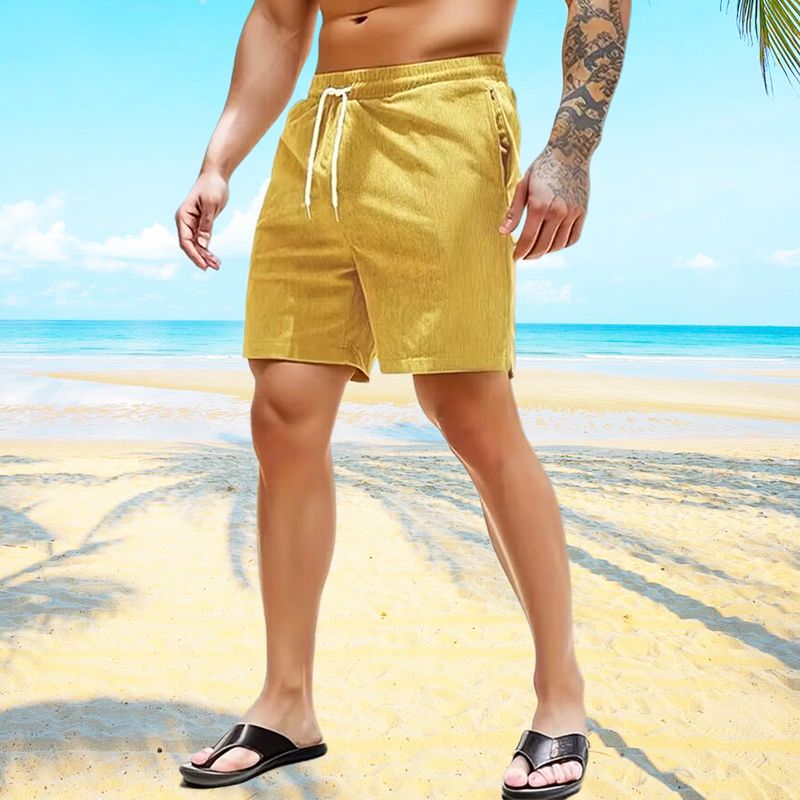 1 * Men's Simple Breathable Ribbed Velvet Casual Shorts