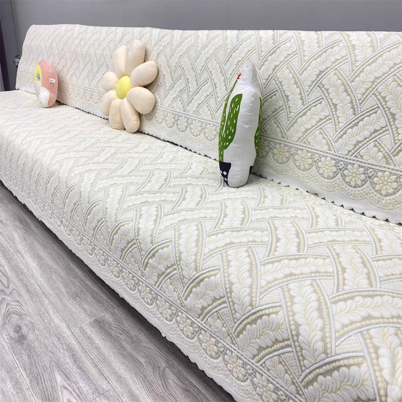 BEIGE AND WHITE COLOR PALETTE - The color palette of beige and white enhances the versatility of the Lace & Wheat Couch Cover. The neutral tones seamlessly integrate with various interior styles, providing a timeless and sophisticated look. Whether your decor is classic or contemporary, this couch cover complements any setting effortlessly.