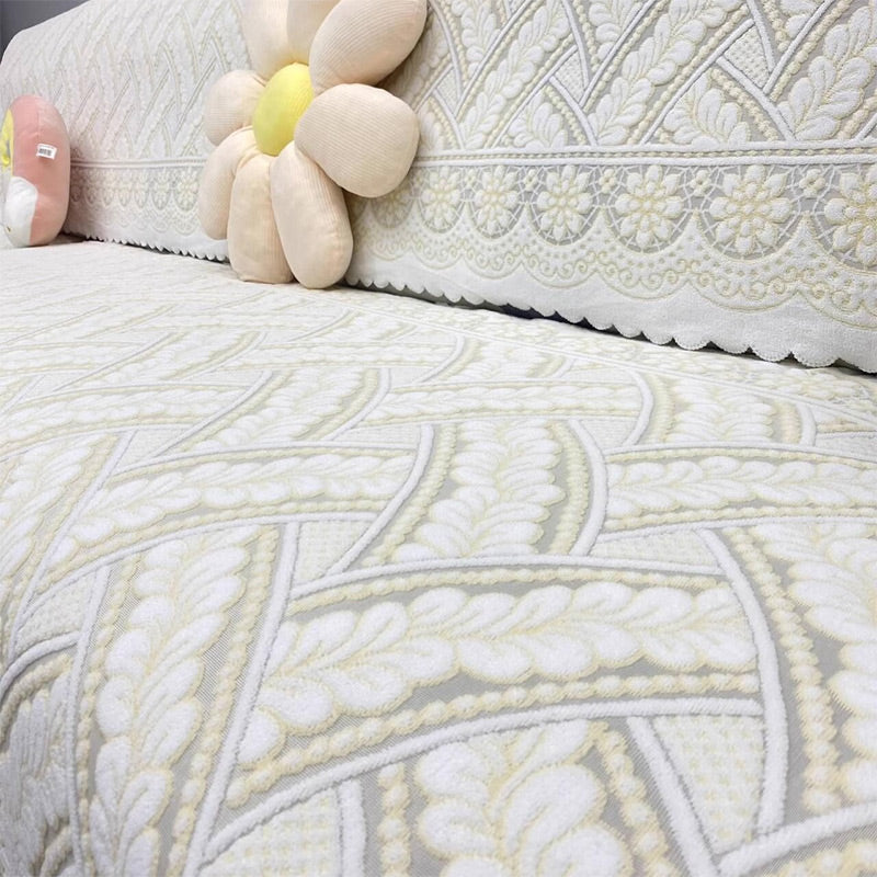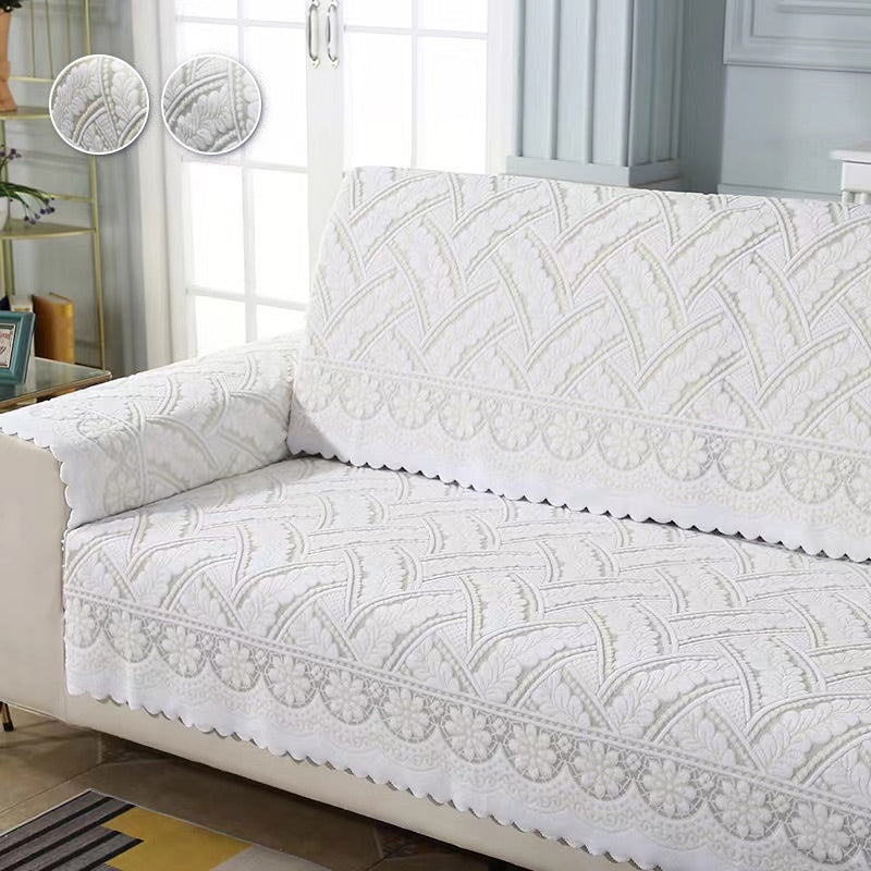 BOTANICAL ELEGANCE - The Lace & Wheat Couch Cover is adorned with a botanical flowers pattern that adds a touch of natural elegance to your living space. The intricate lace and wheat design creates a harmonious and inviting atmosphere, making it a tasteful addition to any home decor.